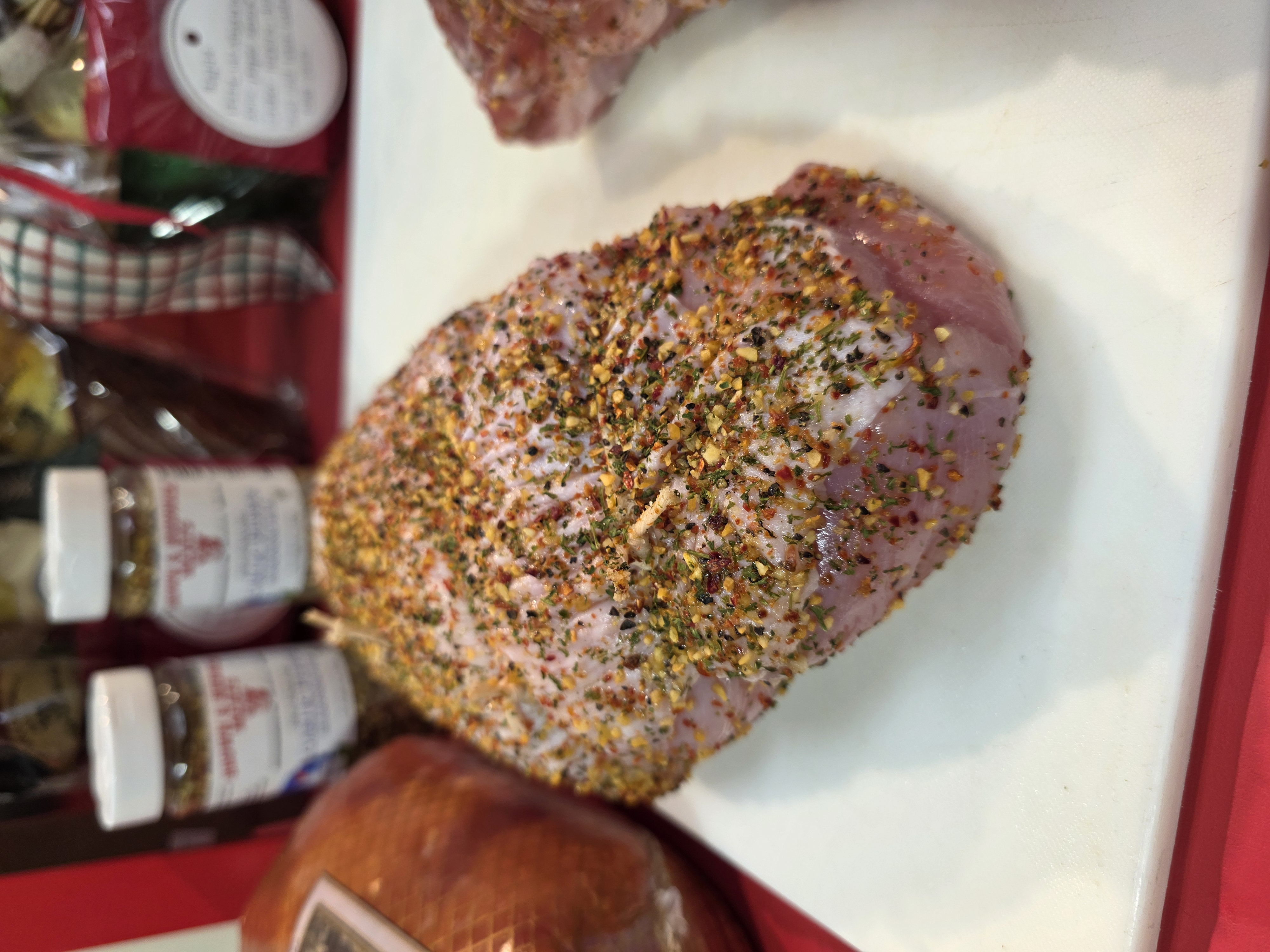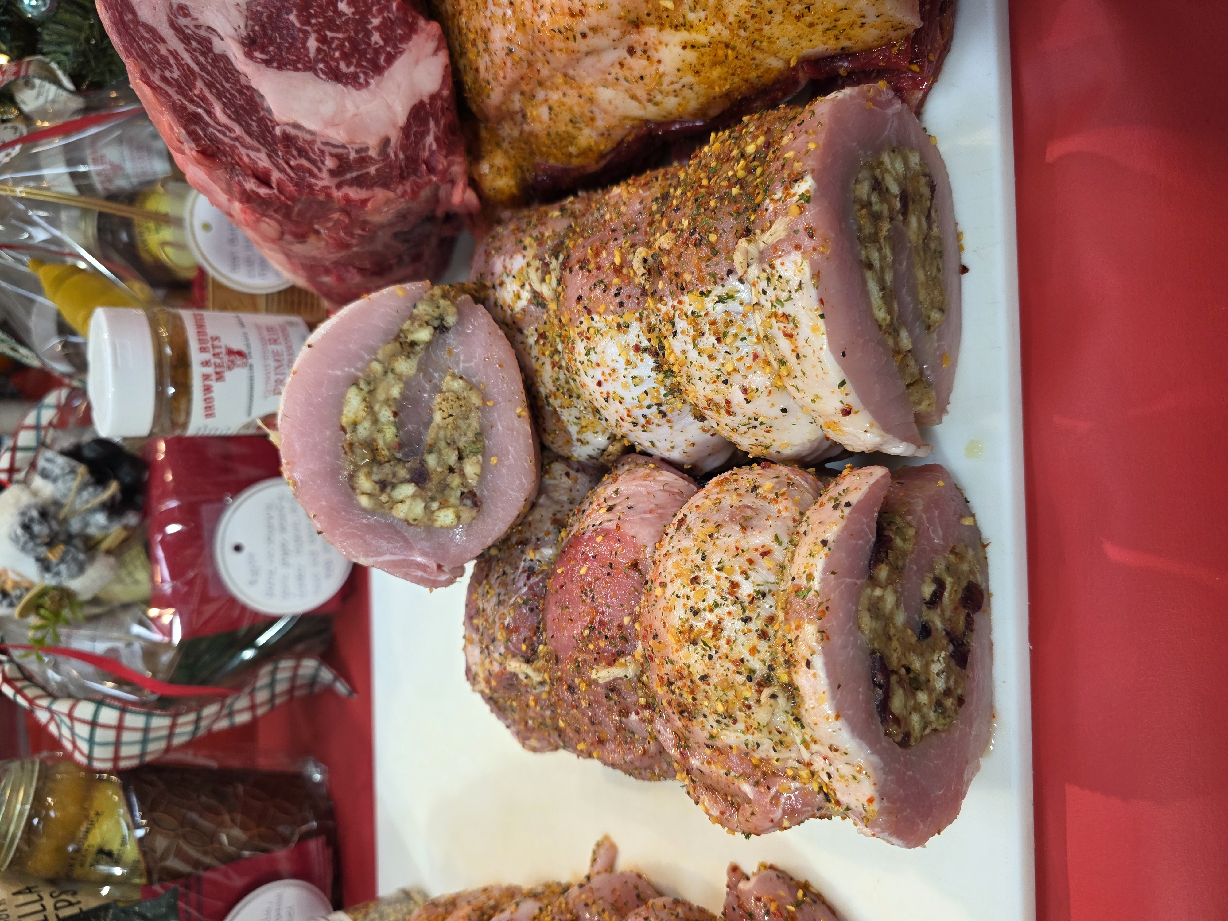 We have prime Duroc boneless pork roasts available! These will be 4lb average and available plain, or stuffed with our homemade apple cinnamon bread stuffing or Italian cold cuts!